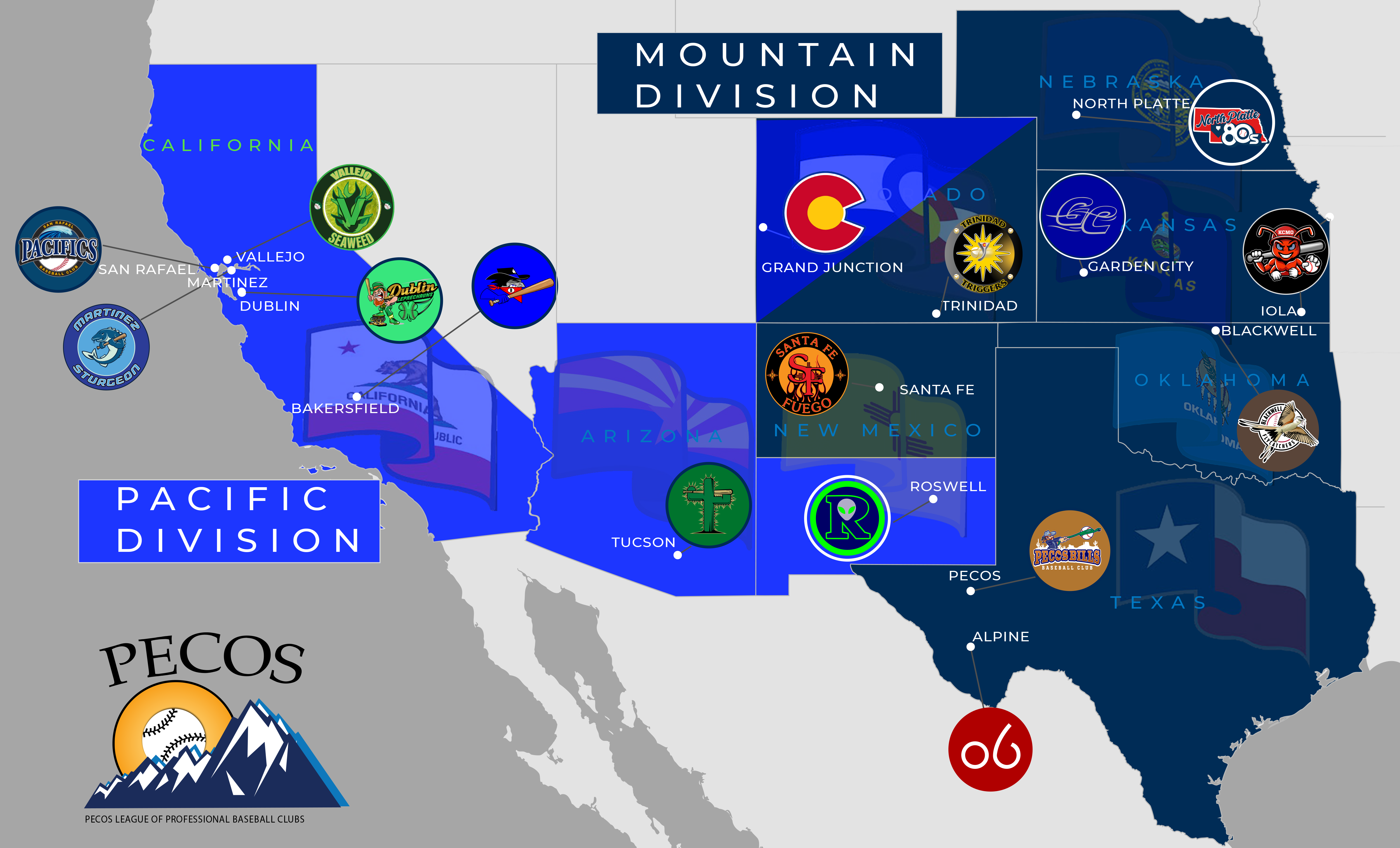 The Pecos League went from 10 teams to 12 teams and moved 4 teams into California.